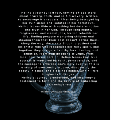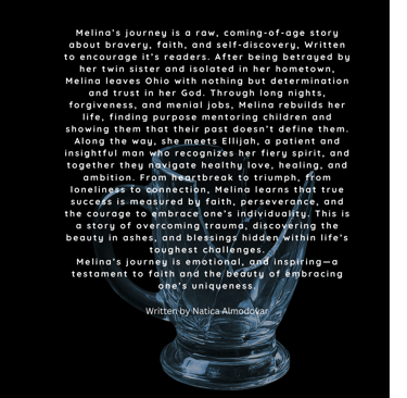Melina is compassionate and open-minded young Character guided by empathy and a genuine care for others. Strong-willed and determined, Pursuing her dreams with courage and conviction. Ambitious yet grounded in faith, she leans on her spiritual roots for strength and direction. Though confident in her abilities, she is never afraid to step out on faith & start fresh embracing humility as a path to growth. Her character reflects both grit and grace—proving that true strength lies in balancing ambition with compassion, and confidence with humility.