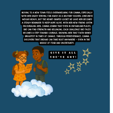 The Soldier’s Daughter is a highlight of military children’s struggles—separation, family changes, and frequent moves. The Soldier’s Daughter helps kids face constant moves, easing loss and guiding them toward hope and belonging Through Cianna’s courage to sing despite loneliness, I hope to inspire children to know their voices are heard, their feelings matter, and their bravery is real. Faith and hope remind them they are stronger than they realize and heroes in their own right.